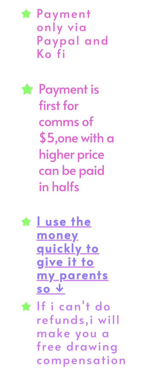 I am a Peruvian queer agender artist and i live in a lower middle-class household so i do comissions to buy things for myself or to help my parents !